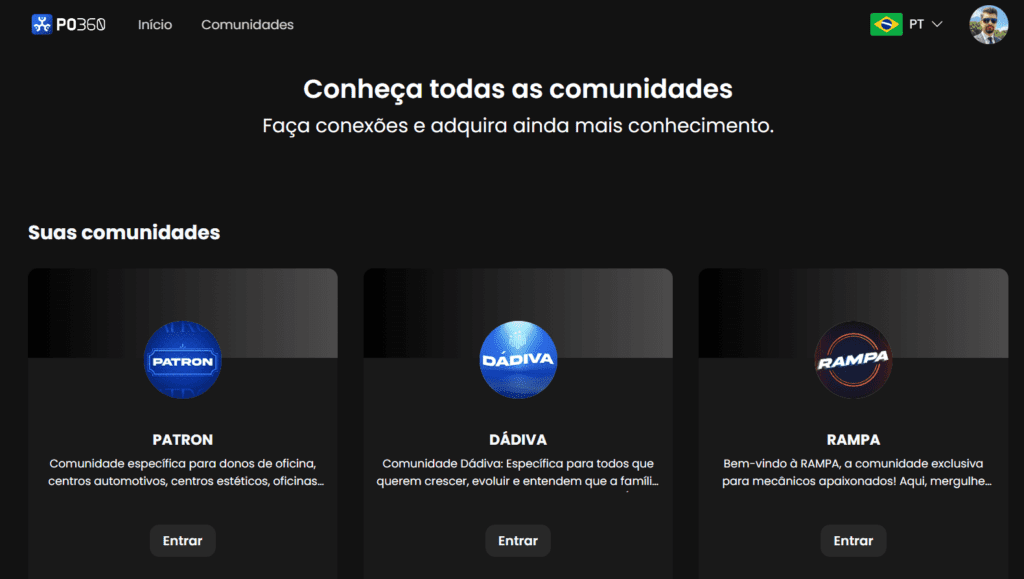 As comunidades na Plataforma Oficina 360 são espaços dedicados que promovem a troca de experiências entre diferentes grupos dentro do setor automotivo. Existem três comunidades principais: